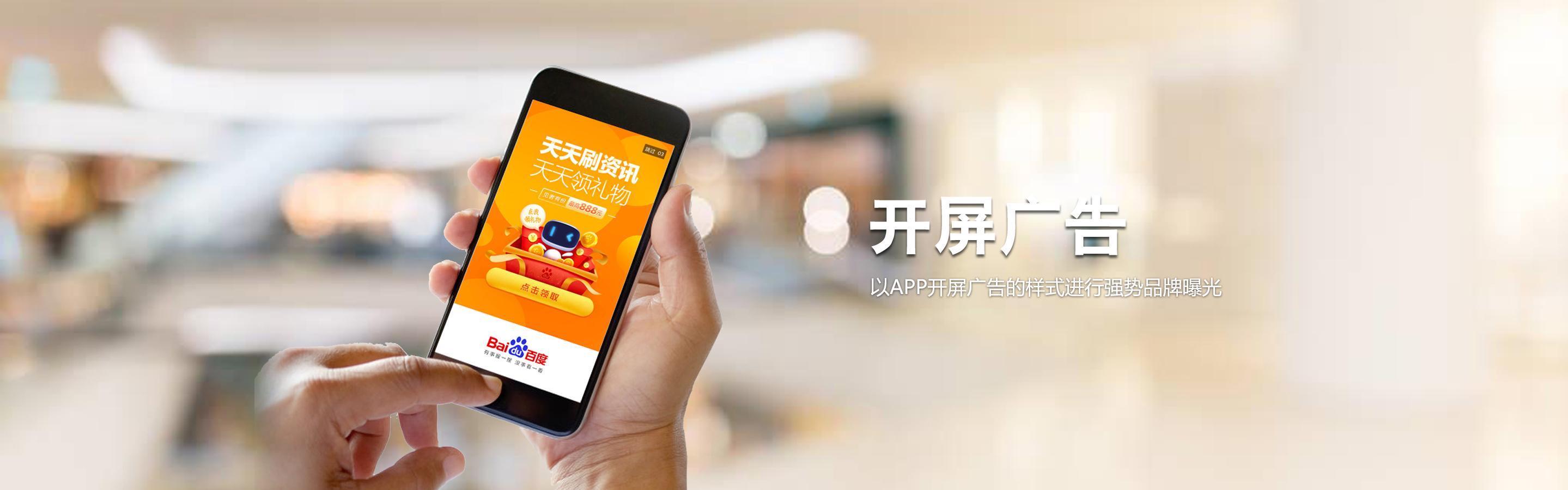 百度開屏整合百度優(yōu)質(zhì)品牌廣告流量 以APP開屏廣告的樣式進行強勢品牌曝光