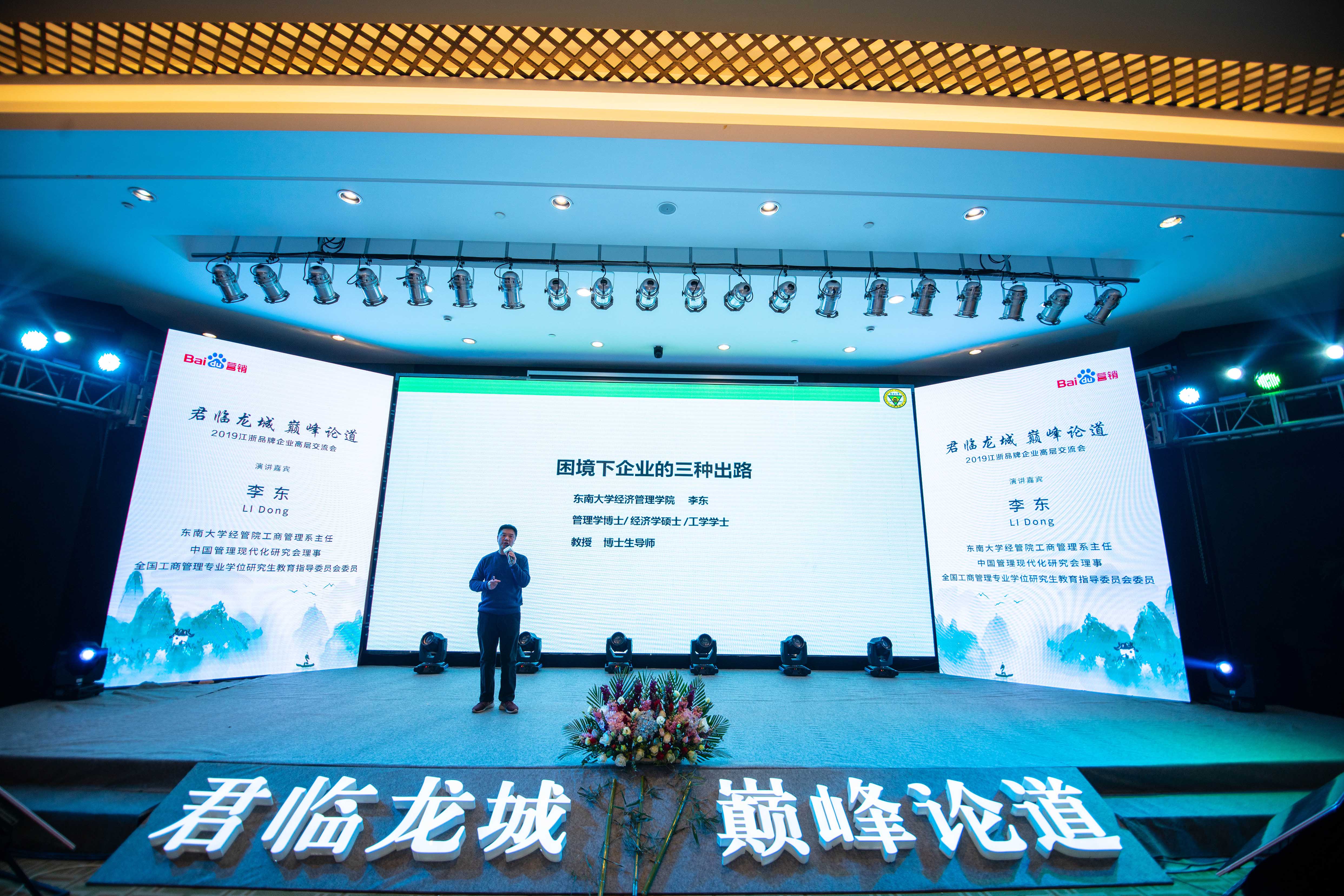 其次,東南大學(xué)經(jīng)濟(jì)管理學(xué)院工商管理系主任李東教授就企業(yè)發(fā)展戰(zhàn)略與商業(yè)創(chuàng)新方面做了精彩演講,他首先對中國市場大環(huán)境進(jìn)行分析,同時就當(dāng)下經(jīng)濟(jì)環(huán)境下企業(yè)的發(fā)展出路及應(yīng)對策略給出了專業(yè)建議。