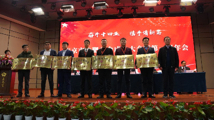 南京市統(tǒng)戰(zhàn)部副部長、市工商聯(lián)黨組書紀(jì)丁銘為商會會長單位授牌,李中兵會長領(lǐng)牌。